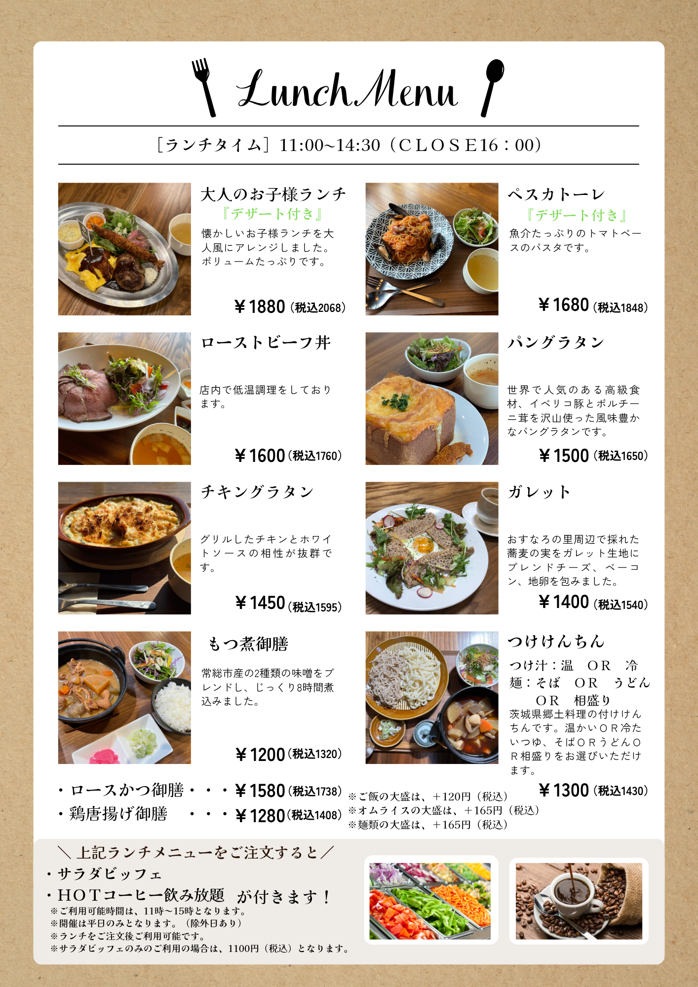 営業時間 土日祭日営業11:00~17:00 ラストオーダー16時30分、平日は16時閉店となります)