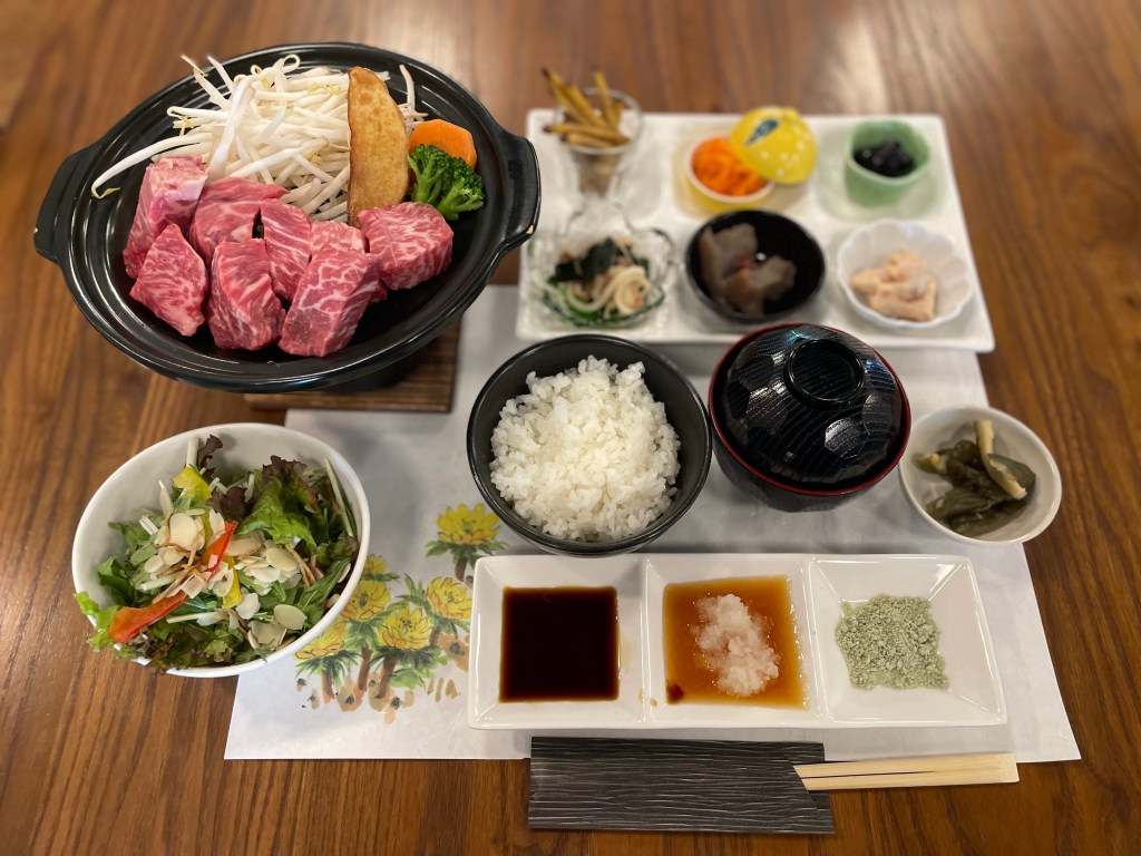 茨城県のブランド肉常陸牛を使った豪華なステーキ御膳です。